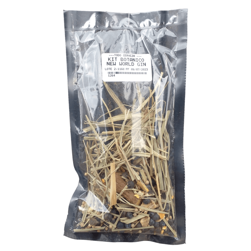 Kit de insumos para gin artesanal. Para preparar un 1,5 litros de infusión, con lo que te quedaría luego entre 3 y 4 litros de gin aproximadamente.