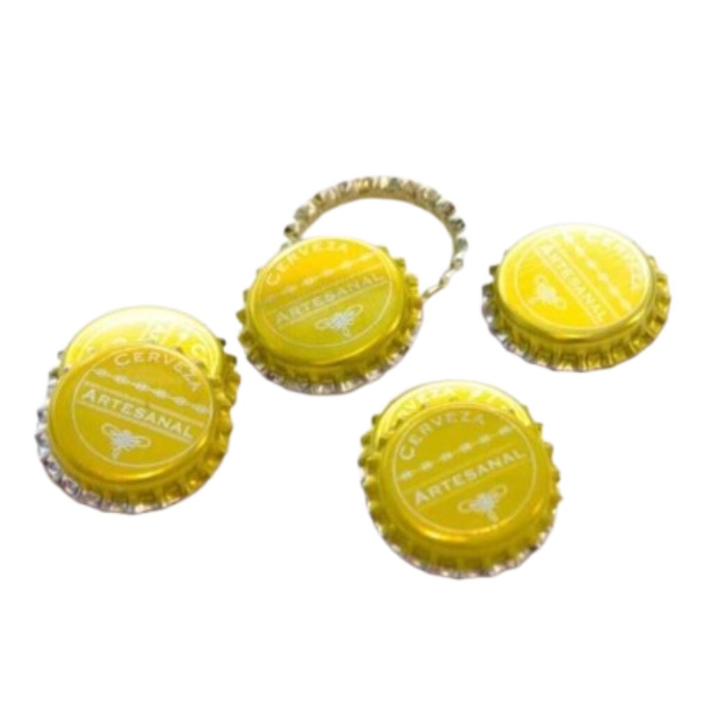 Tapas corona “cerveza artesanal” color amarillo 26 mm. X 100 unidades